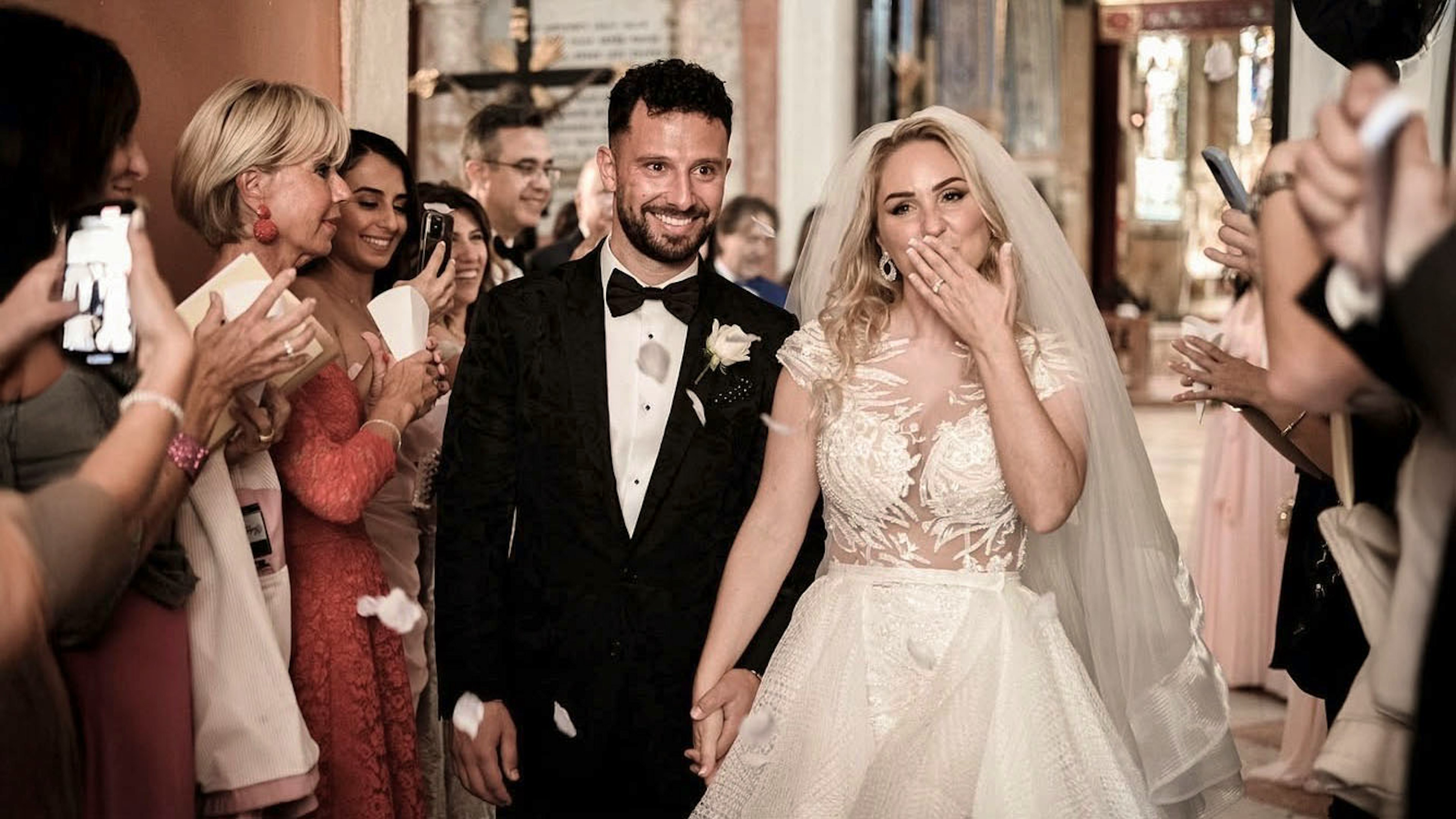 Wir haben die ganze Zeit über gegrinst – neun Minuten lang – und mussten auch ein bisschen weinen, weil es so berührend war. Die Drohnenaufnahmen sind atemberaubend! Man nimmt die Location am Tag selbst gar nicht so intensiv wahr, aber aus der Vogelperspektive wirkt alles nochmal ganz besonders – die Kirche, die Umgebung, einfach alles… Es war einfach überwältigend.